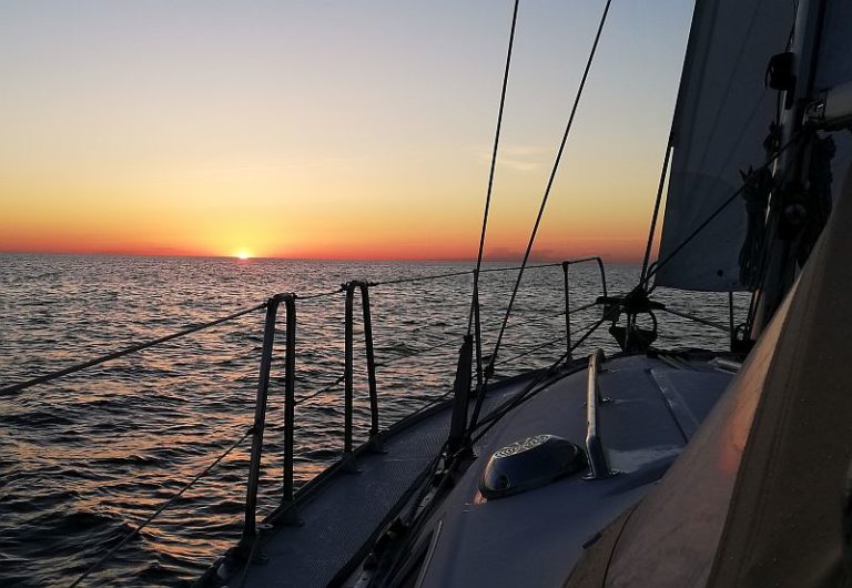 Um 14 Uhr werfen wir die Leinen los und kreuzen mit gerefften Segeln mit Kurs gen Darßer Ort. Aber wir machen wenig Höhe und 4 Stunden später lässt der Wind nach. So kommen wir nicht voran. Wir werfen den Motor an und Kaline gleitet gemächlich über ruhiges glattes Wasser an Darßer Ort vorbei und weiter bis Höhe Hiddensee. Dann mal wieder segeln, aber nach einer Stunde versieht der Motor wieder seinen Dienst.